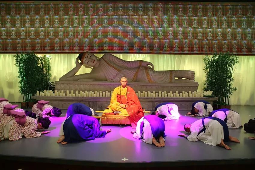 演出之前,工作人員會引導大家圍坐,閉目盤膝,調息打坐,進入“禪定”境界,而后,伴隨著360度環(huán)繞大屏、卓越的聲光電等高科技手段,一段傳奇就此拉開帷幕。