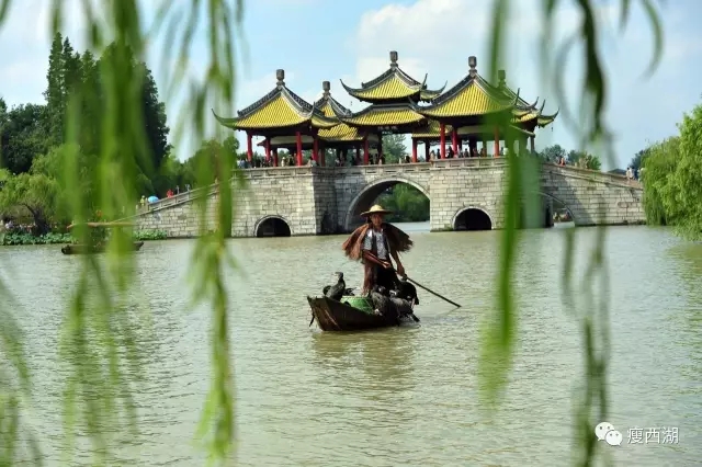 一葉扁舟出沒于瘦西湖碧水之中